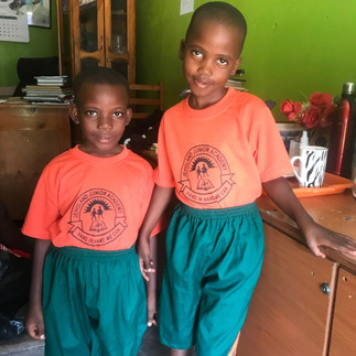 Mama Fab reports to Jeholand Junior Academy each day to check attendance for our sponsored children and to handle any other issues. DLM is extremely blessed to have her as a valuable employee. Today, she took these pictures of our sponsored children when they received their new sportswear uniform.