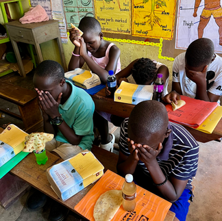 I woke up this morning around 3:00 am and couldn’t go back to sleep. Arnold and I exercised at 4:00 am. We both napped from 5:30 am to 6:15 am. We left the house coming to 7:00 am. We celebrated Arnold’s birthday today by enjoying some yummy food from Kampala! We ate breakfast and then bought groceries. Then we went to the school for Bible study. There were 10 kids for Bible study today. We met from 12:00 pm to 3:00 pm. Of course, we played a few rounds of bingo with some sweets (candy) as prizes. We sang a couple of songs. The kids are learning the books of the Bible in a song by Shaii Linne!! We continued our reading in Acts with chapters 10-12 and learned about the Holy Spirit coming upon the Gentiles. Praise God for the expansion of the Church that continues to this day! The kids had a snack and a soda as our final activity of the day. I had food delivered to the school for Arnold and me to enjoy for dinner, including a piece of cake for each of us to celebrate his birthday!! We reached home at 5:30 pm. So thankful for a safe journey today. Glory to God Alone!