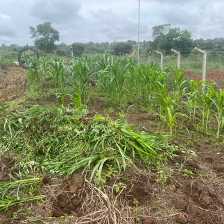 Today, Arnold and I watched a sermon online and then gardened for four hours in the late afternoon. We weeded most of the time. The other week, we gave a job to some community ladies to come plant corn, ground nuts (peanuts), white sweet potatoes, and beans. Check out the progress!