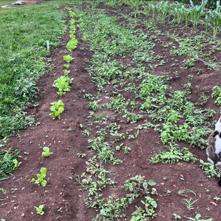 The other vegetables I planted are growing nicely... the zucchini, sweet corn, lettuce, and potatoes. Yes, the soil is so fertile that I can’t manage the weeds, as you can tell in the pictures! Haha!! The squash, watermelon, green beans, and okra are starting to sprout. We are still waiting on the broccoli, carrots, and cucumbers to sprout. We have dried out some red, green, and yellow pepper seeds and planted them today. We are also beginning to see new roots on our onion and hope to plant it soon, as well.